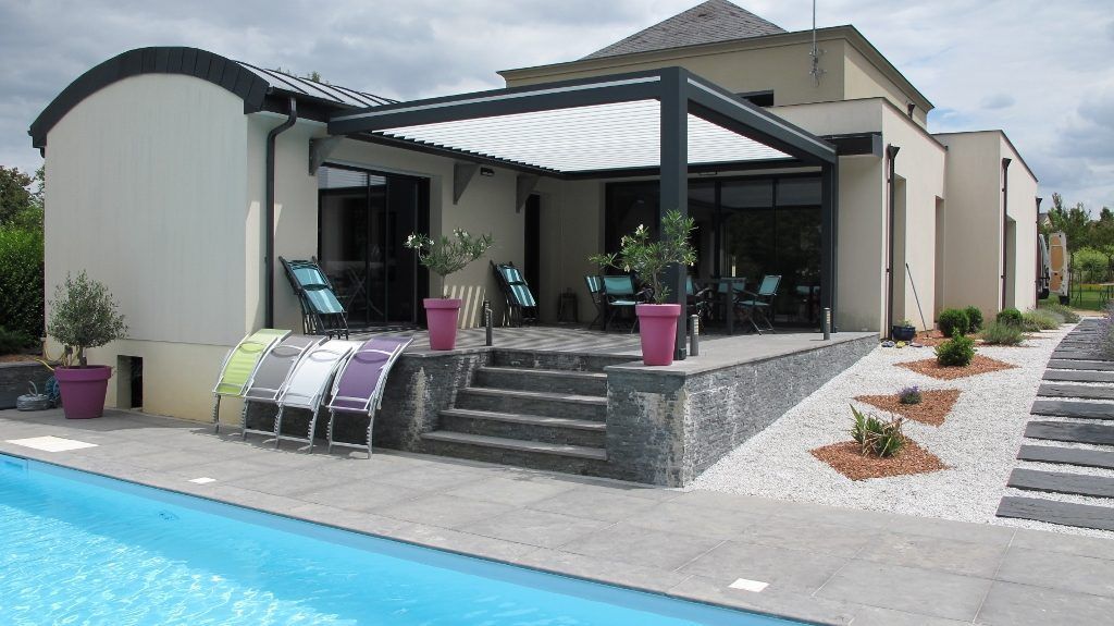 La pergola bioclimatique vous permet de vous protéger du soleil et de la pluie en toute saison. Le système de gestion climatique apporte une facilité d’utilisation supplémentaire.